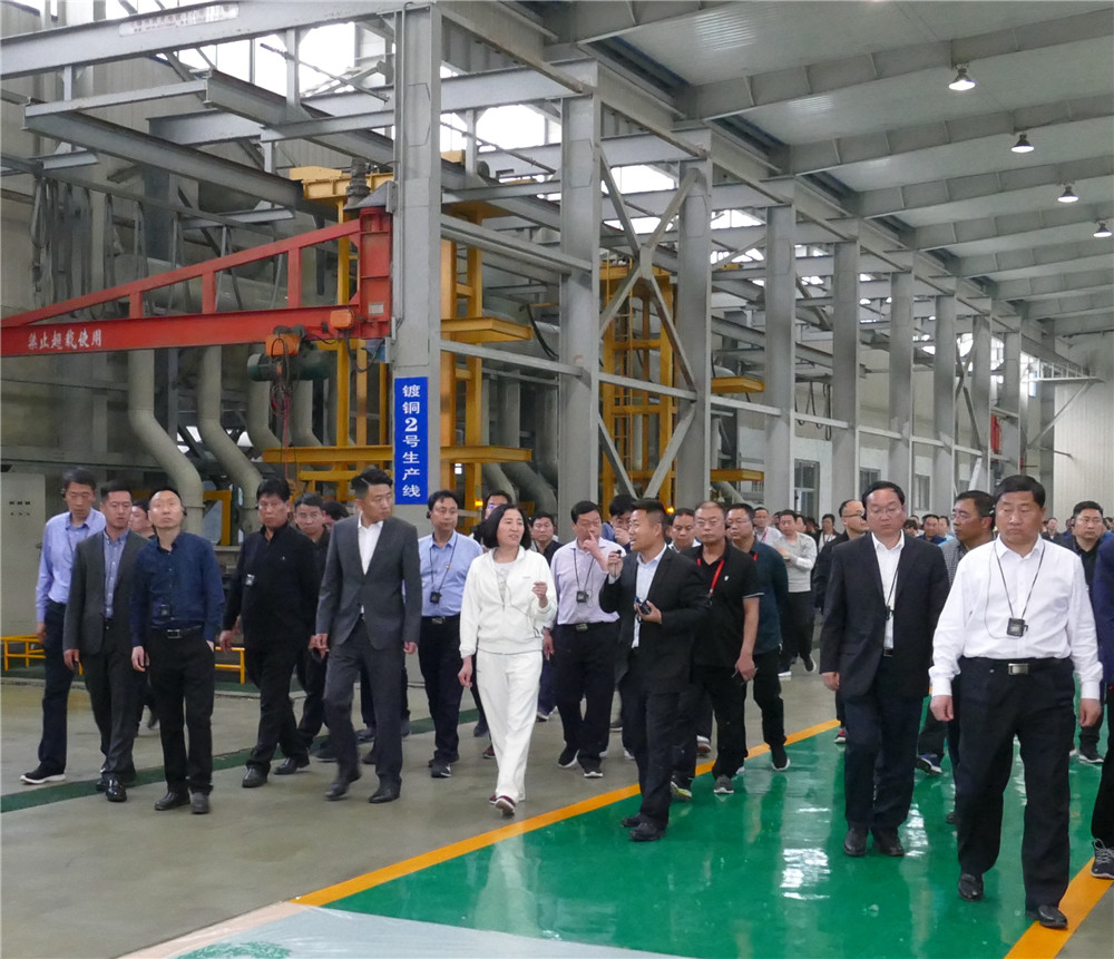 此次觀摩團(tuán)主要對(duì)我公司的表面處理車(chē)間電鍍工藝、土壤污染源頭防范、污水處理、危險(xiǎn)廢物管理等方面進(jìn)行考察??偨?jīng)理郭釧代表集團(tuán)公司對(duì)各位領(lǐng)導(dǎo)的到來(lái)表示熱烈的歡迎,并對(duì)公司基本情況、環(huán)保投入等方面做了簡(jiǎn)要介紹。公司環(huán)保項(xiàng)目辦主任李宏旺對(duì)公司的電鍍工藝、土壤污染源頭防范、污水處理、危險(xiǎn)廢物管理做了詳細(xì)的介紹。公司的環(huán)保治理工作得到了觀摩團(tuán)的一致好評(píng)。