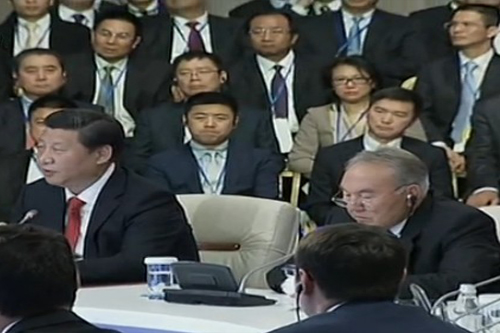 為深化中俄、中哈企業(yè)經(jīng)貿(mào)合作,增進友好往來,2013年9月4日,公司郭現(xiàn)生董事長(后排中)隨同習(xí)近平主席對俄羅斯、哈薩克斯坦兩國進行了考察。這次郭現(xiàn)生董事長作為中國企業(yè)家高訪團團長帶領(lǐng)部分中國企業(yè)家進行了考察,考察期間,先后與俄羅斯、哈薩克斯坦的企業(yè)家進行了經(jīng)貿(mào)洽談,并參觀了俄羅斯圣彼得堡、哈薩克斯坦阿斯塔納市重要的歷史文化古跡,領(lǐng)略了兩國燦爛的民族文化。9月8日,與習(xí)近平主席、哈薩克斯坦總統(tǒng)納扎爾巴耶夫共同出席了中哈企業(yè)家委員會成立大會。(辦公室)