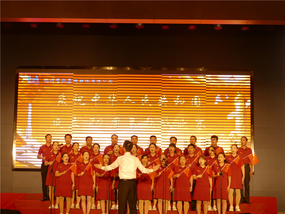 活動在全體合唱《歌唱祖國》的歌聲中達到高潮。集團公司主要領導登臺同全場員工舞動起鮮艷的五星紅旗,共同歌唱祖國,歌唱美好的新時代。