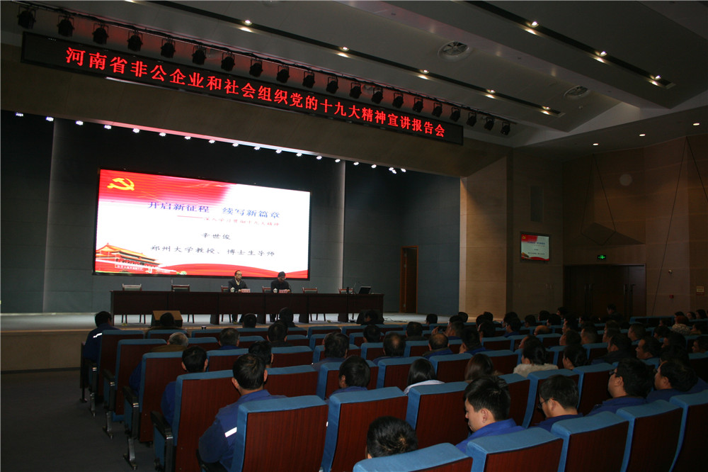 根據(jù)河南省委宣傳部、省委組織部安排部署,省非公企業(yè)和社會(huì)組織黨的十九大精神宣講報(bào)告會(huì)于12月11日下午在林州重機(jī)多功能廳舉行。省十九大精神宣講團(tuán)成員、鄭州大學(xué)教授、博士生導(dǎo)師辛世俊作宣講報(bào)告,辛教授從八個(gè)方面對(duì)十九大報(bào)告深入淺出,通俗易懂闡述了報(bào)告精神實(shí)質(zhì)和深刻內(nèi)涵。安陽市委宣傳部、市委組織部,林州市委宣傳部有關(guān)領(lǐng)導(dǎo)參加并聆聽了宣講報(bào)告。公司黨委書記郭現(xiàn)生及中高層領(lǐng)導(dǎo),全體黨員及入黨積極分子,機(jī)關(guān)各部室管理人員及車間管理人員共300余人聽取宣講報(bào)告。會(huì)后,公司黨委書記、董事長(zhǎng)郭現(xiàn)生接受了安陽電視臺(tái)的采訪。