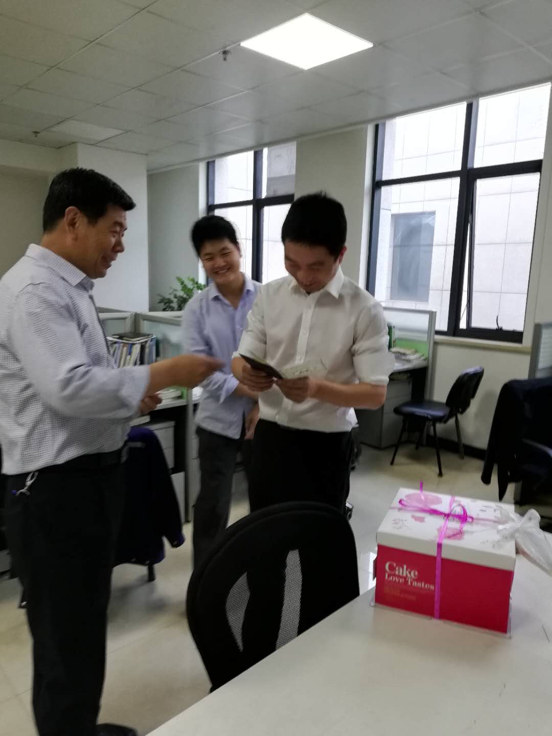 5月10日上午8時許,公司工會主席路建存攜帶生日蛋糕和生日賀卡走進(jìn)車間,親自將生日禮物送到當(dāng)天過生日的員工手中,并代表公司董事長、總經(jīng)理表示生日祝賀。當(dāng)路主席把生日蛋糕送到員工手中時,他們感到非常驚訝,有的員工本人都不記得今天是自己生日,而公司把生日禮物送到了手中,員工們激動的說:非常感謝公司領(lǐng)導(dǎo)的關(guān)懷。