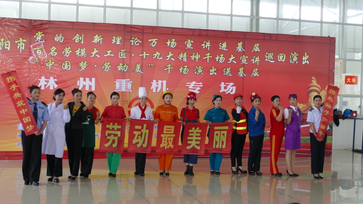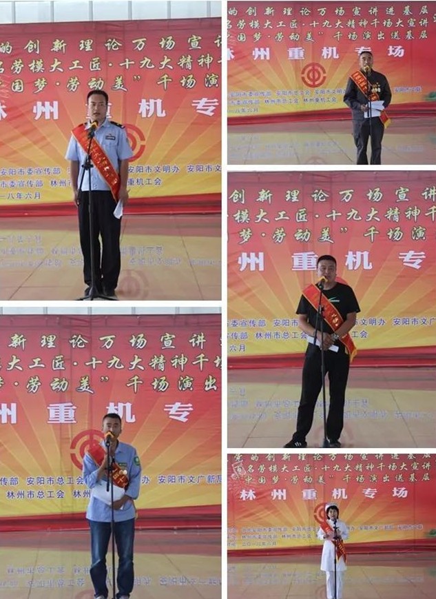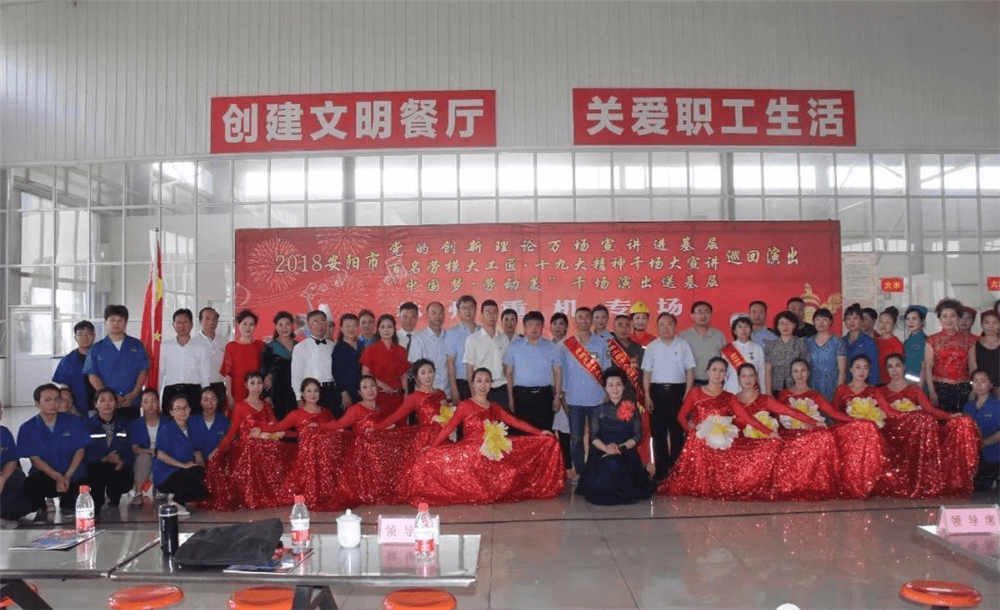 6月6日下午,安陽市黨的創(chuàng)新理論萬場(chǎng)宣講進(jìn)基層、百名勞模大工匠?十九大精神千場(chǎng)大宣講暨“中國夢(mèng) 勞動(dòng)美”千場(chǎng)演出送基層巡回演出活動(dòng)走進(jìn)林州重機(jī)。河南省委宣傳部副部長尹書博,省委宣傳部理論處副處長楊小強(qiáng),省委宣傳部理論教育講師團(tuán)副團(tuán)長趙琳,安陽市委宣傳部副部長冀曉東,安陽市委宣傳部理論科長龍晨曦,安陽市總工會(huì)宣教部部長張艾敏,林州市委常委、宣傳部長王獻(xiàn)青,林州市總工會(huì)主席栗旺生,副主席張曉云, 公司黨委副書記、副總經(jīng)理趙正斌,黨委委員、工會(huì)主席路建存及職工代表300余人等出席活動(dòng)。